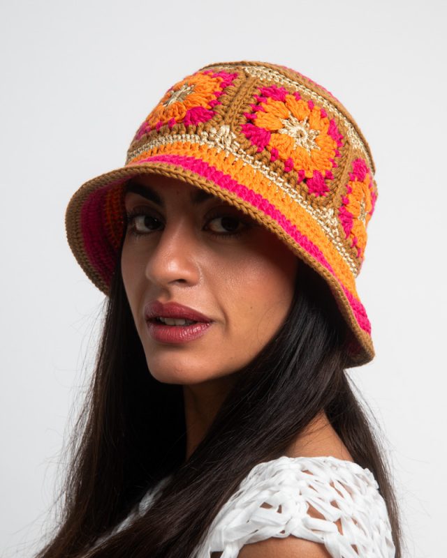 89,00 €Knitted summer hat, patchwork of flowers, orange