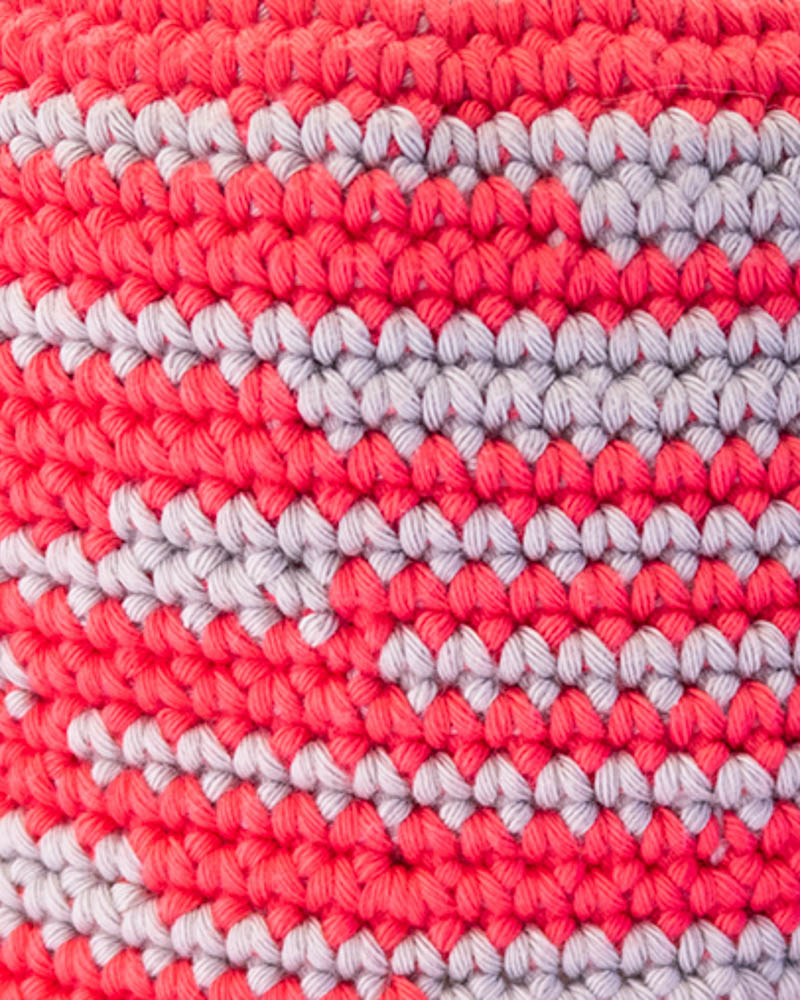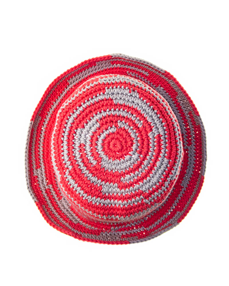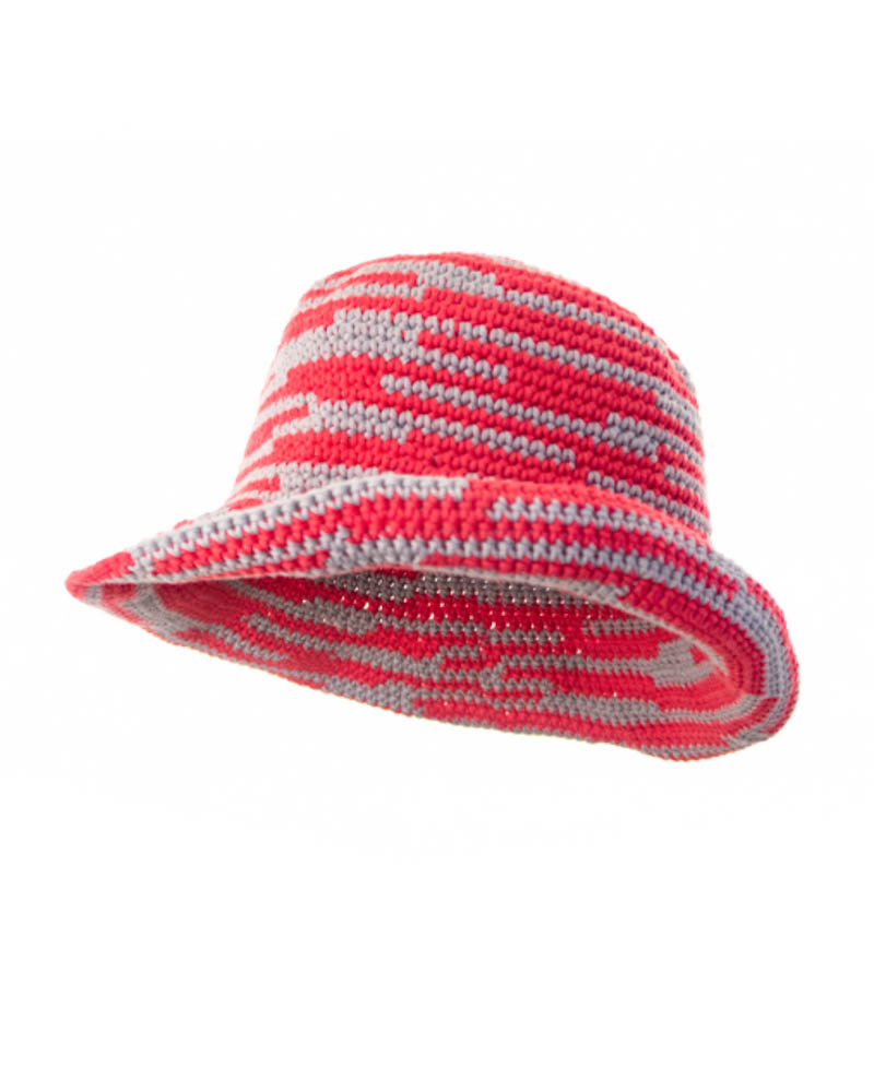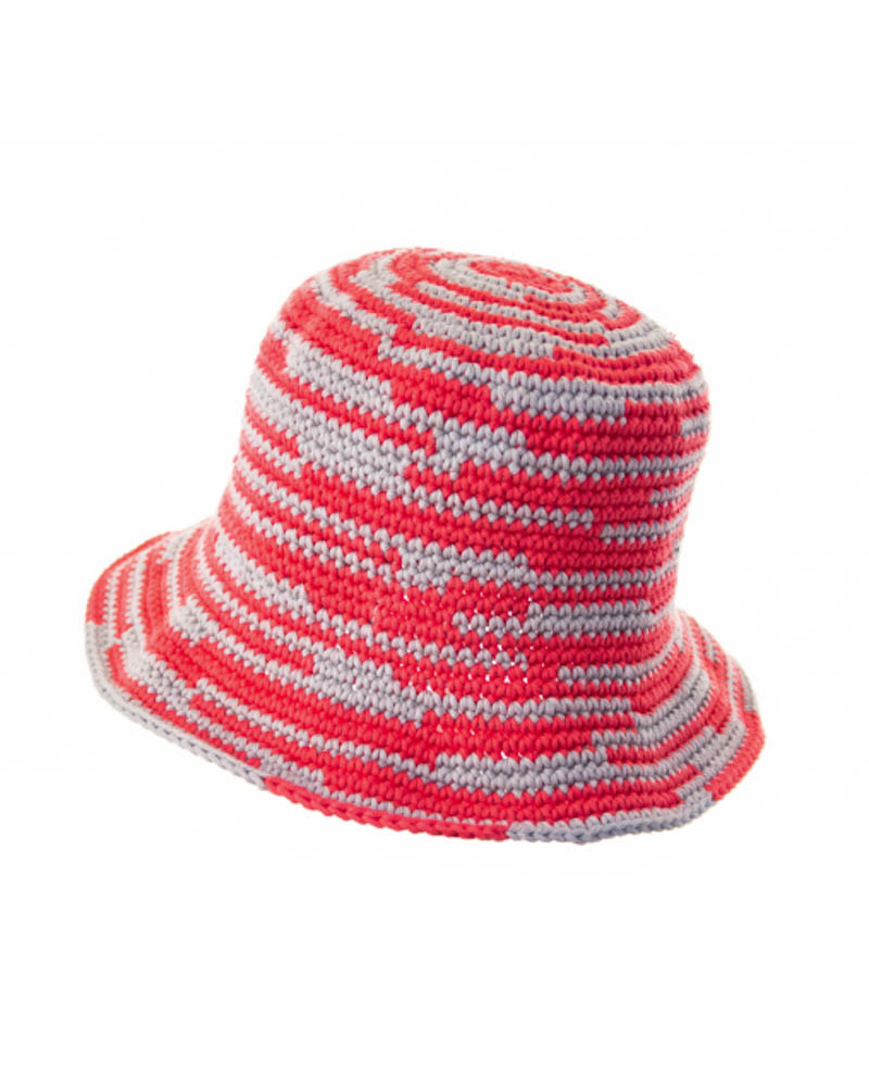 Asymmetrical striped knitted summer hat, fucsia & grey