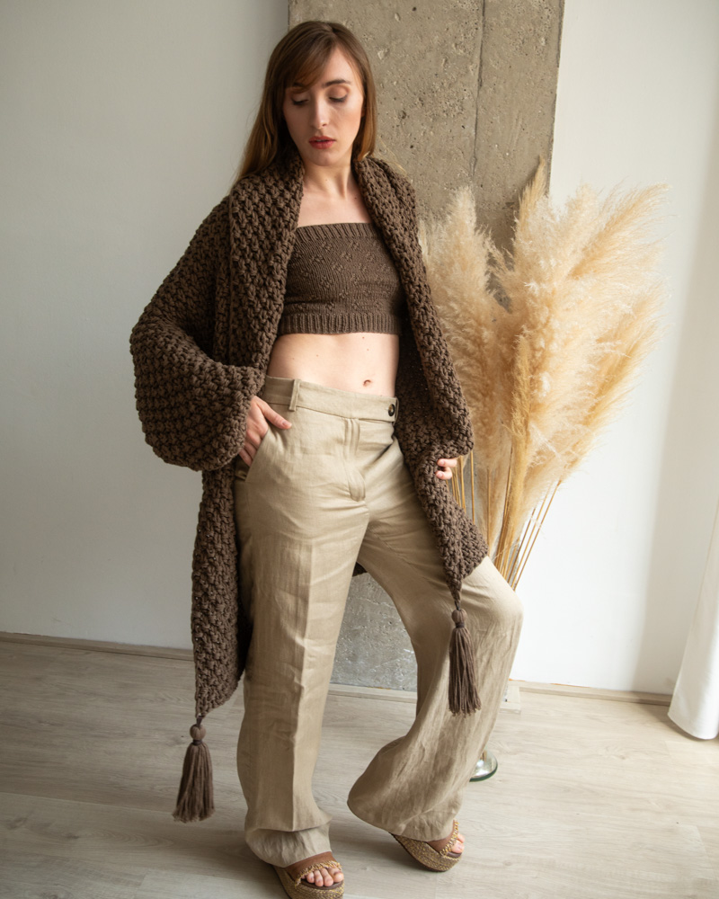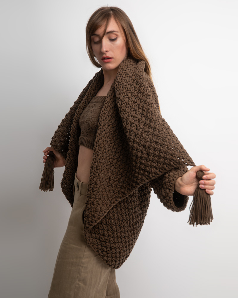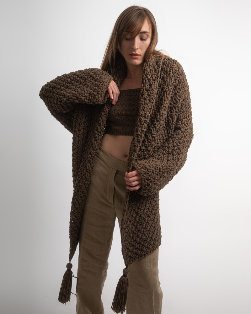 Cardigan BLUEBELL. Reversible pom pom cotton Cardigan