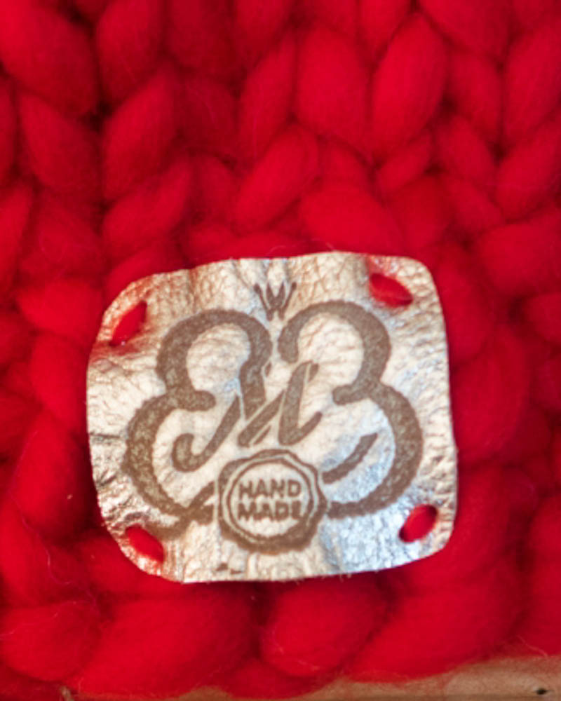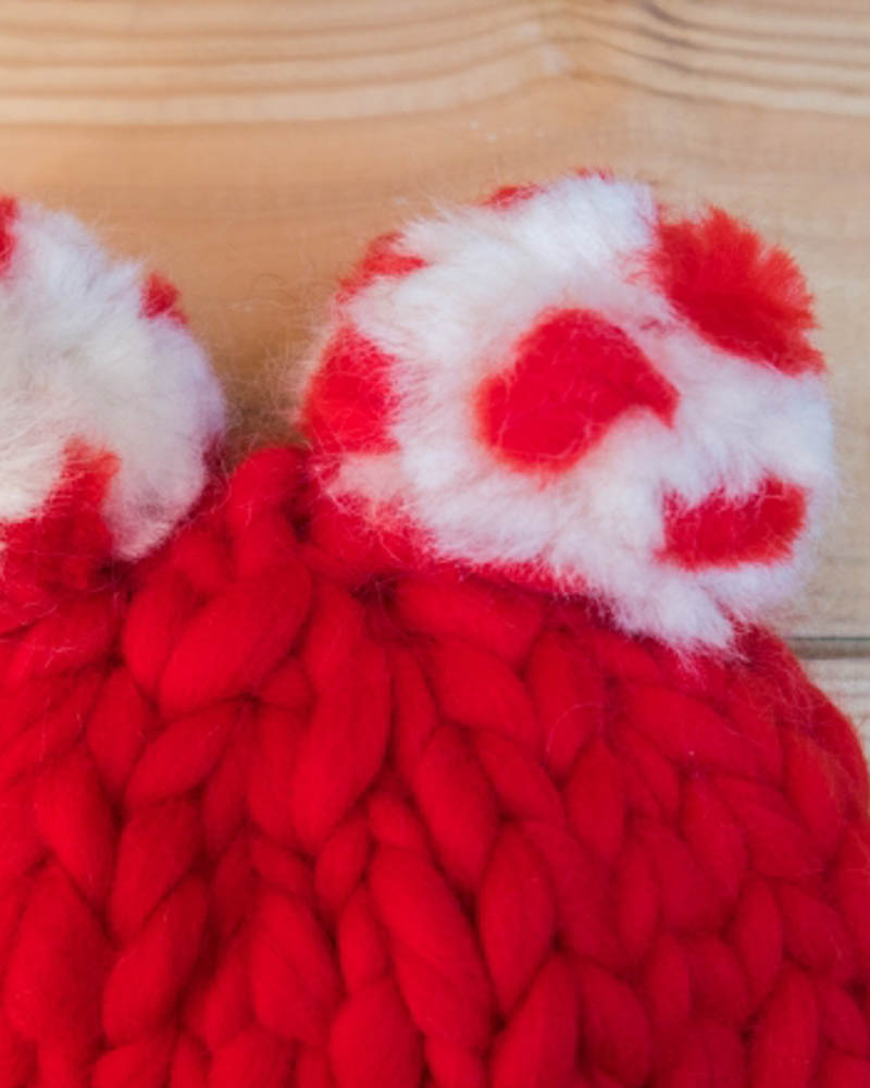 Child beanie red hat with two pom-poms, 100% merino wool, bulky knit