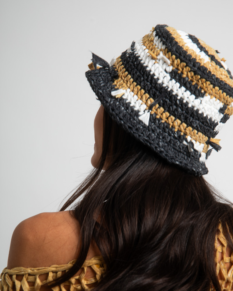 Chunky knit multicolor Bucket hat, White Beige Black