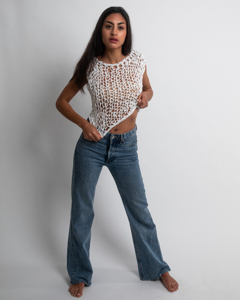 Big mesh asymmetrical long sleeve top