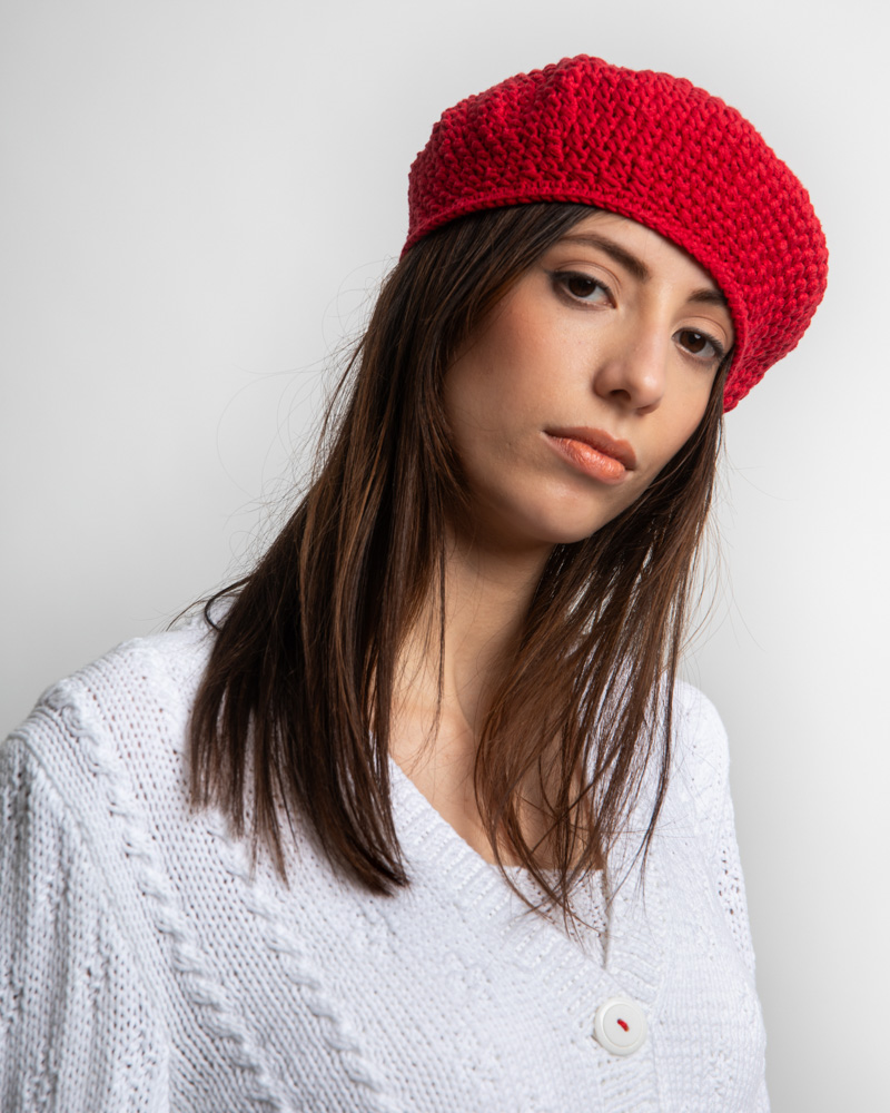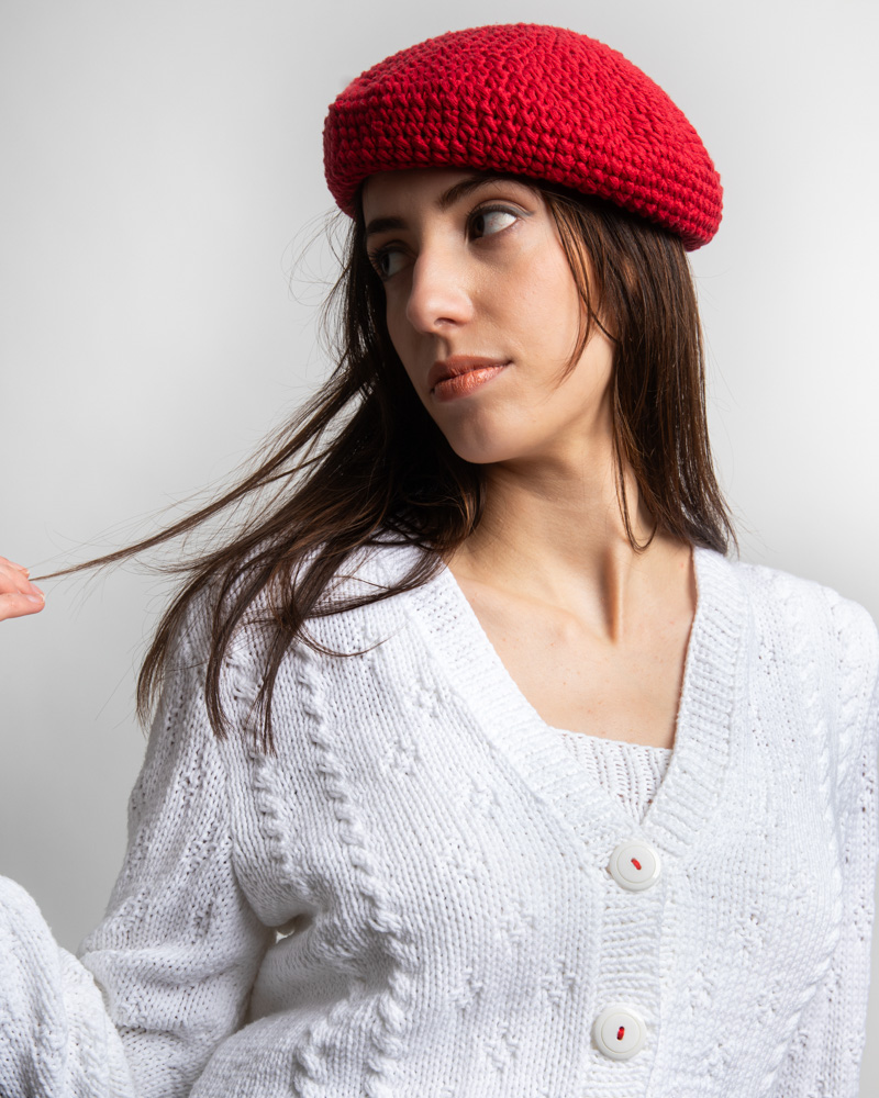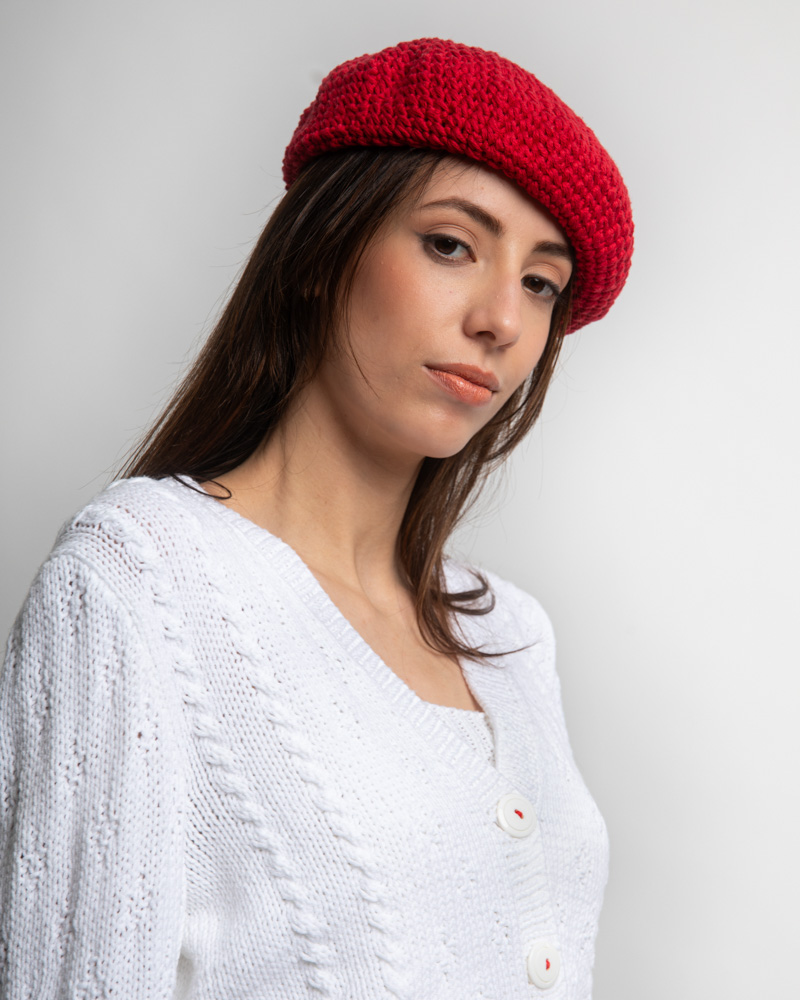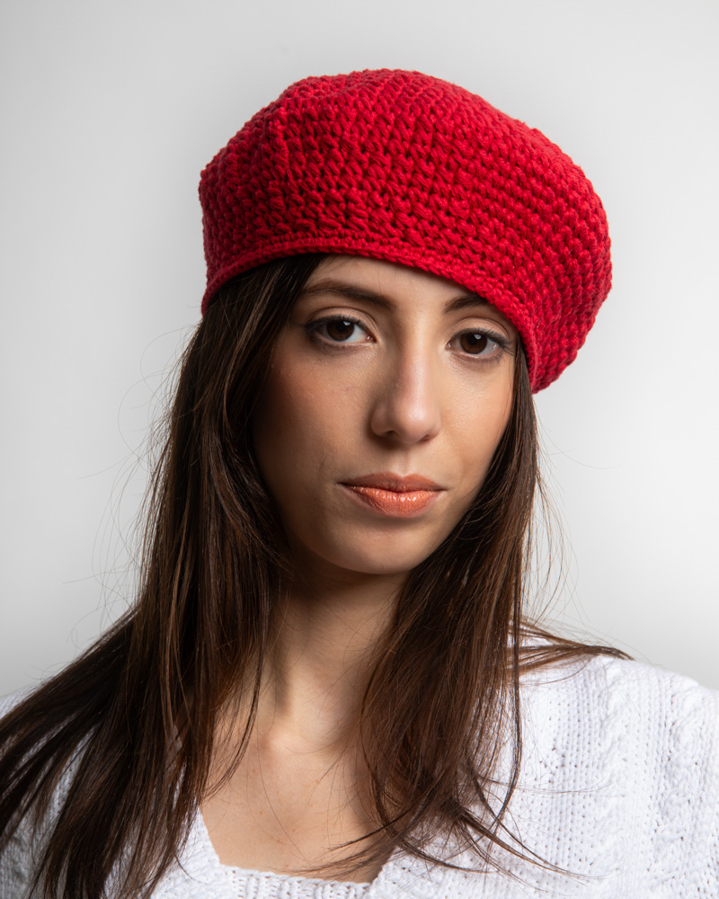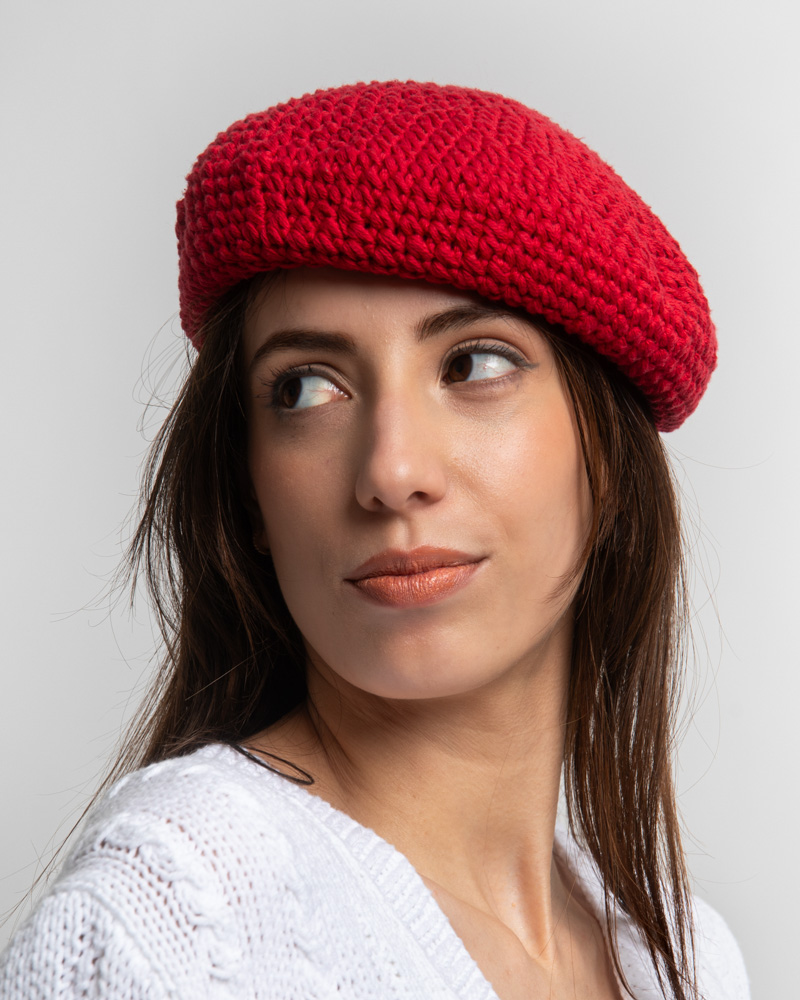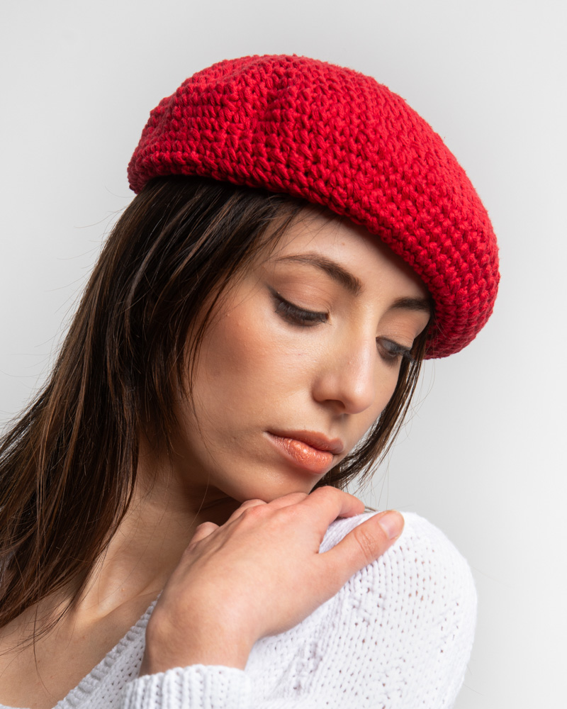 Crochet Cotton Beret, Red