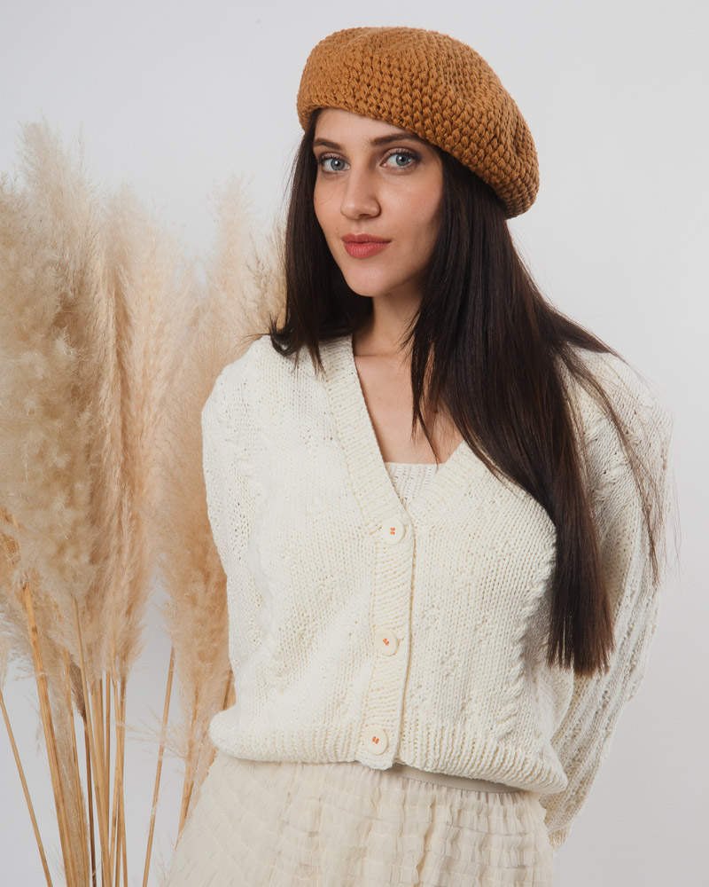 Make a Statement: Embrace timeless elegance with our crochet beret. Whether you’re sipping coffee at a café or exploring the city, this accessory will turn heads and keep you cozy.