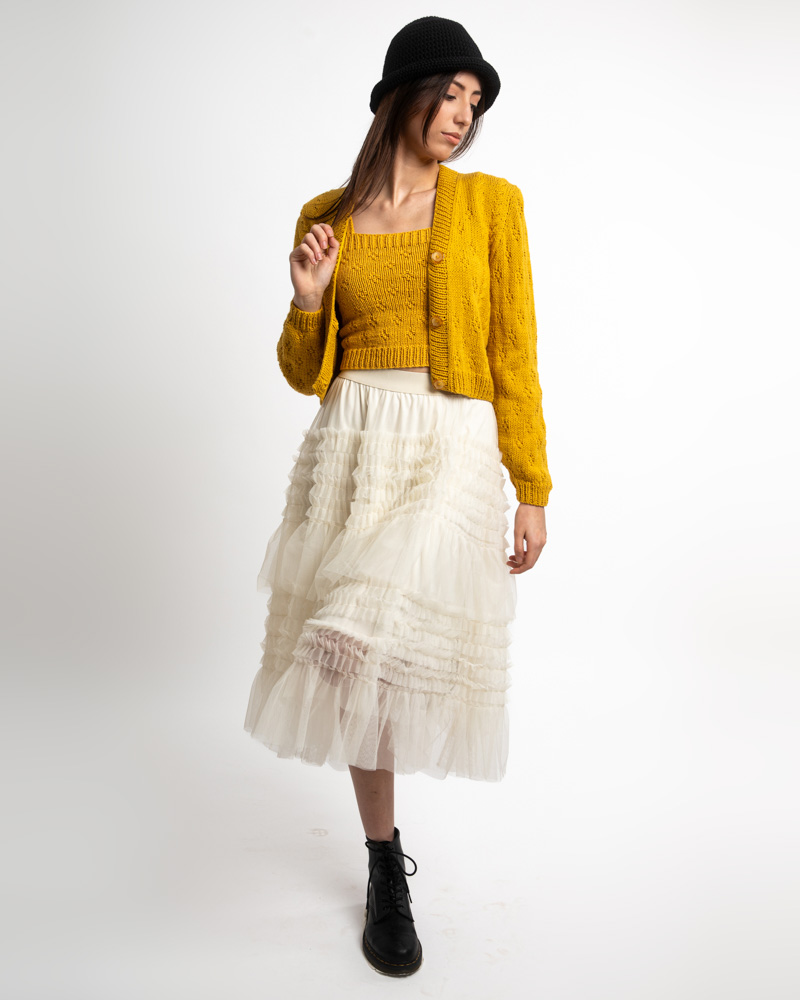 89,00 €Knitted summer hat, patchwork of flowers, yellow