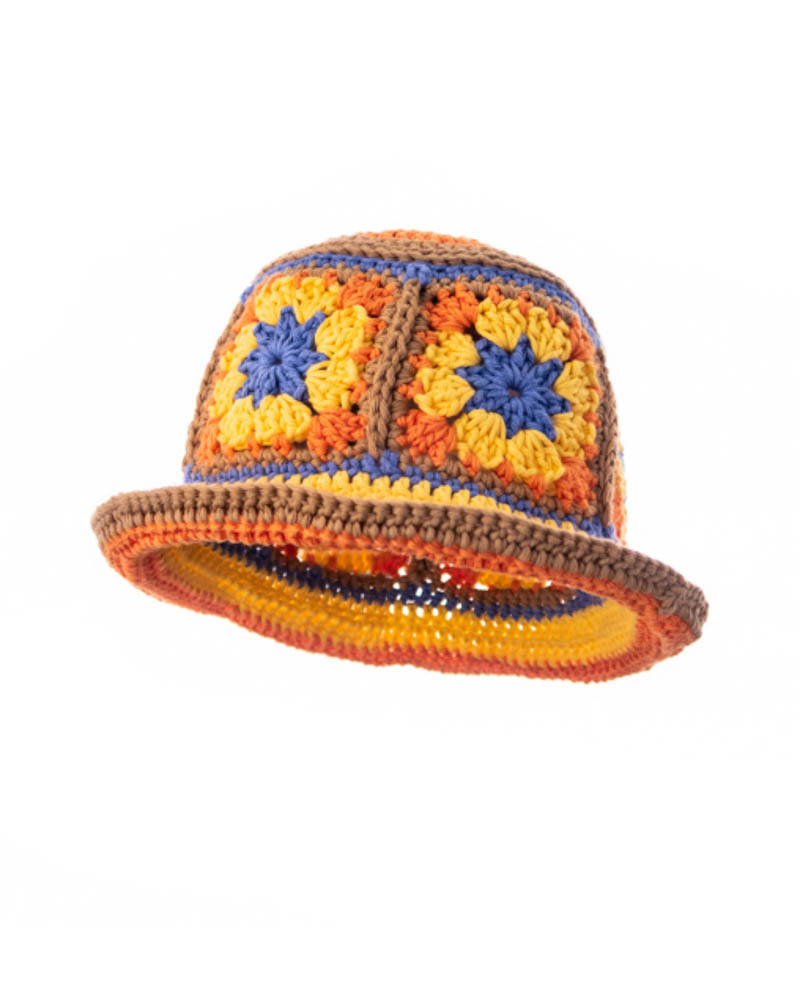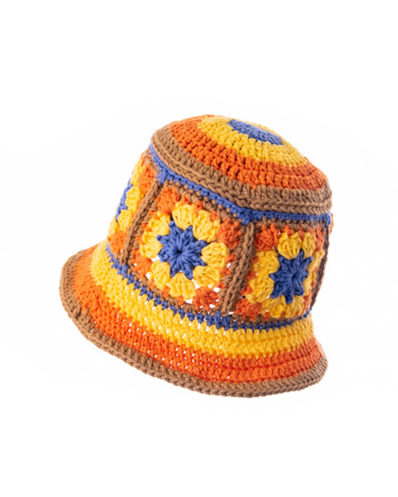 Bucket Hat with squares and stripes, Yellow, Orange & Blue