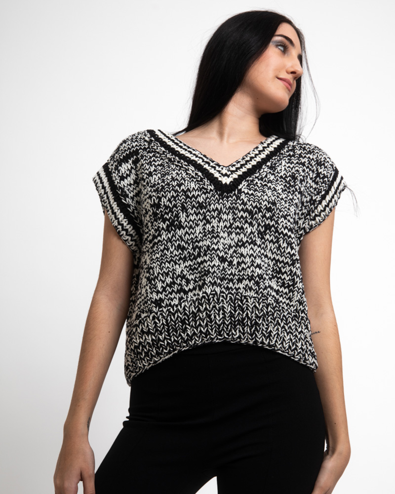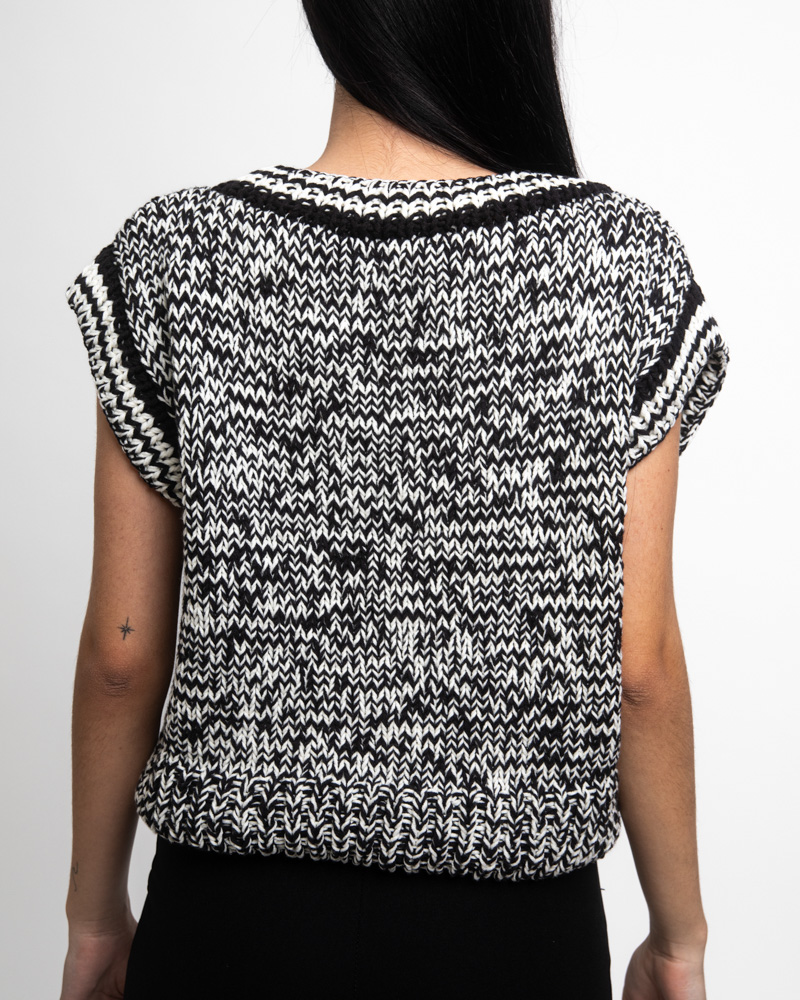 Melange cotton blend knit vest. Black & White