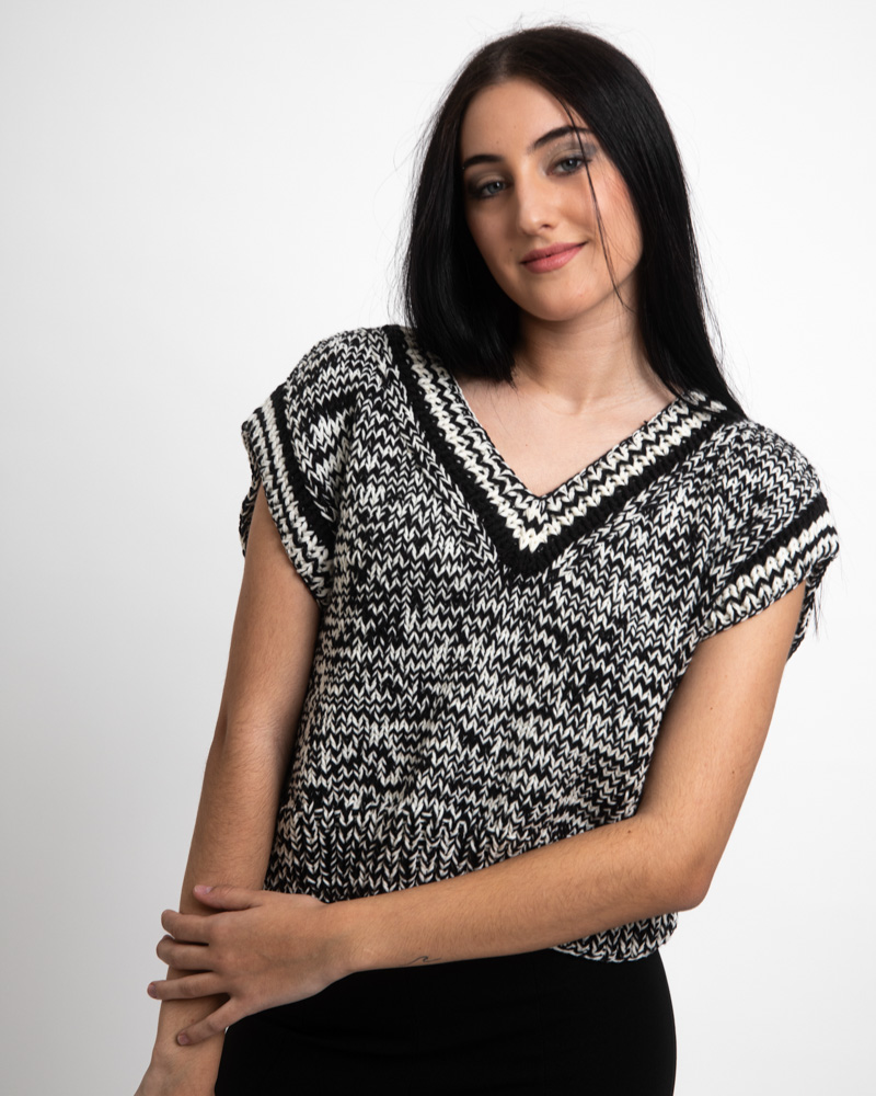 Chunky knit long sleeve top, Black and White