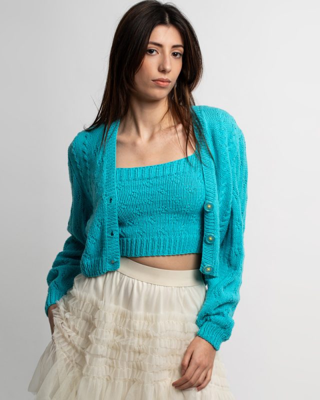 Cardigan BLUEBELL. Reversible pom pom cotton Cardigan