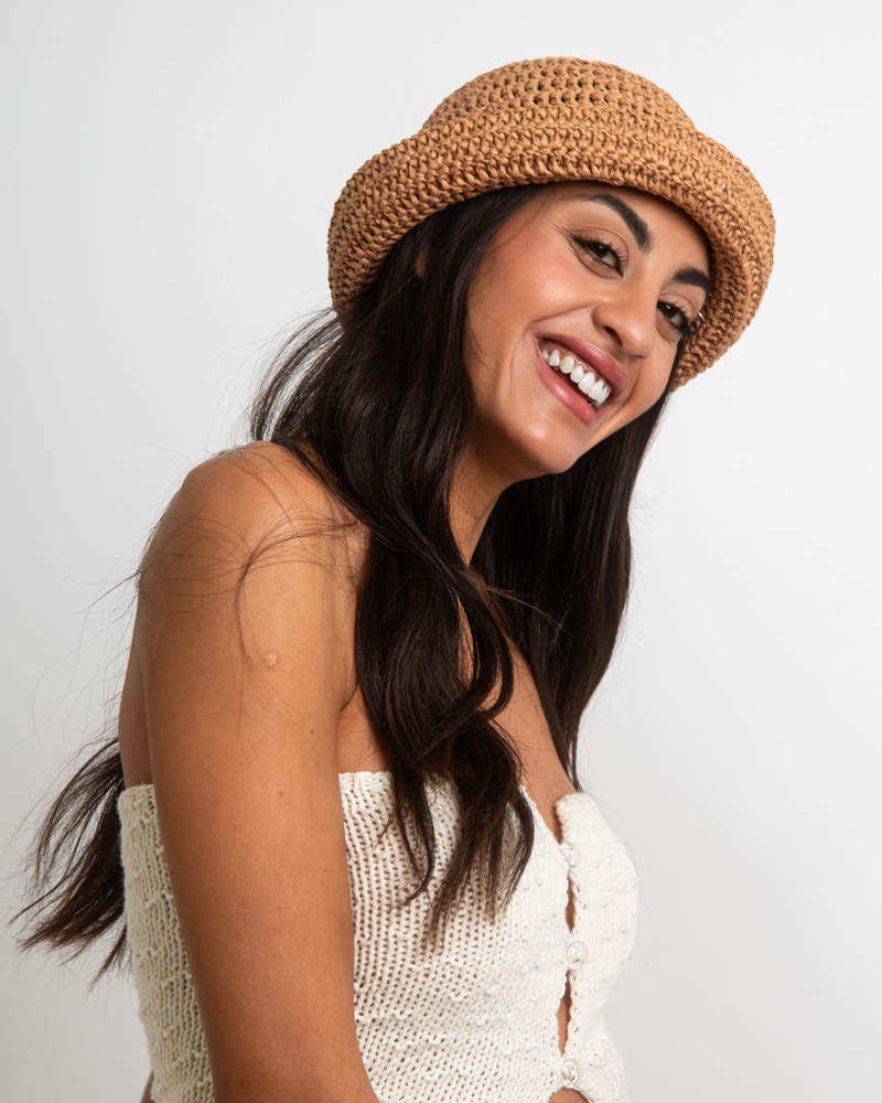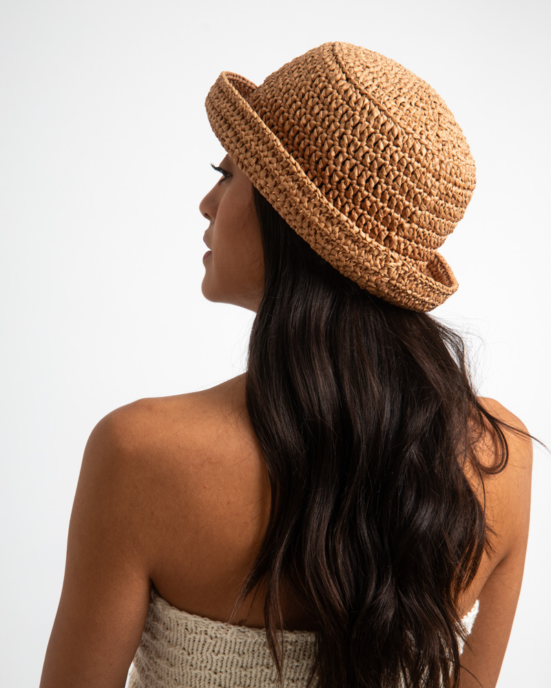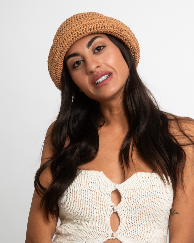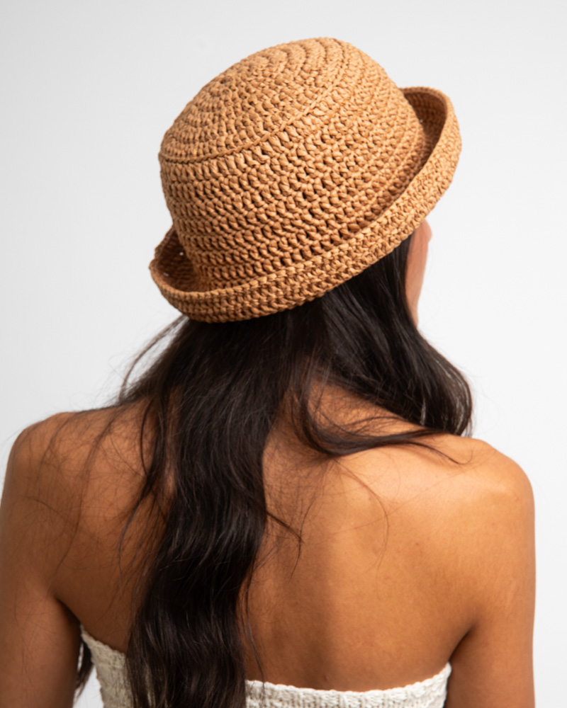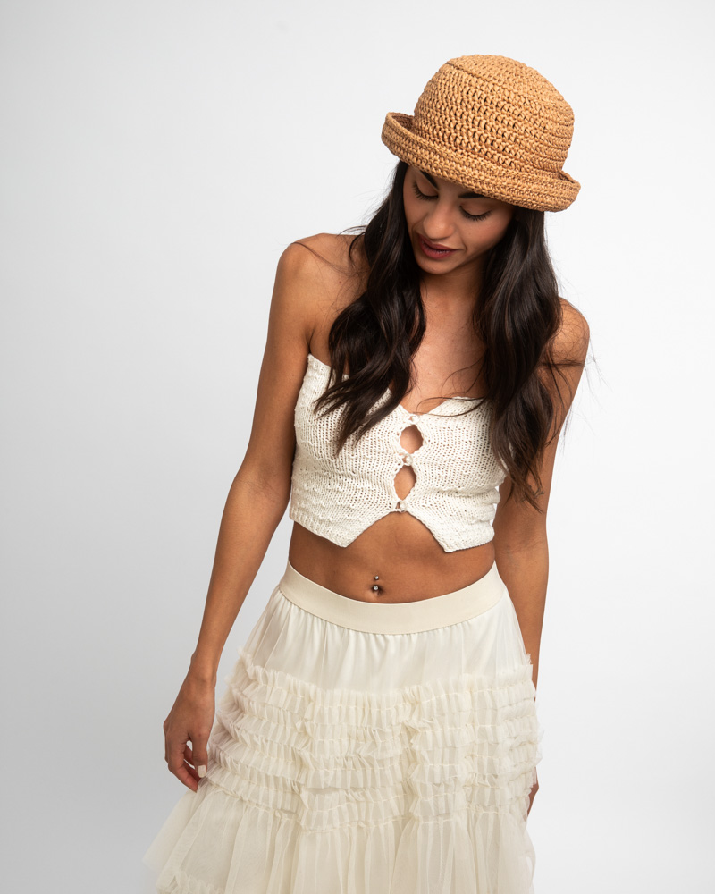 65,00 €Knitted summer hat, patchwork of flowers, orange