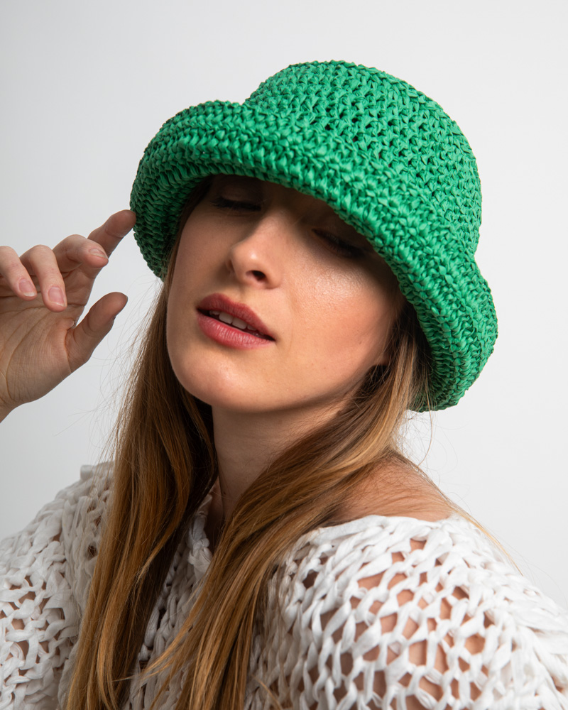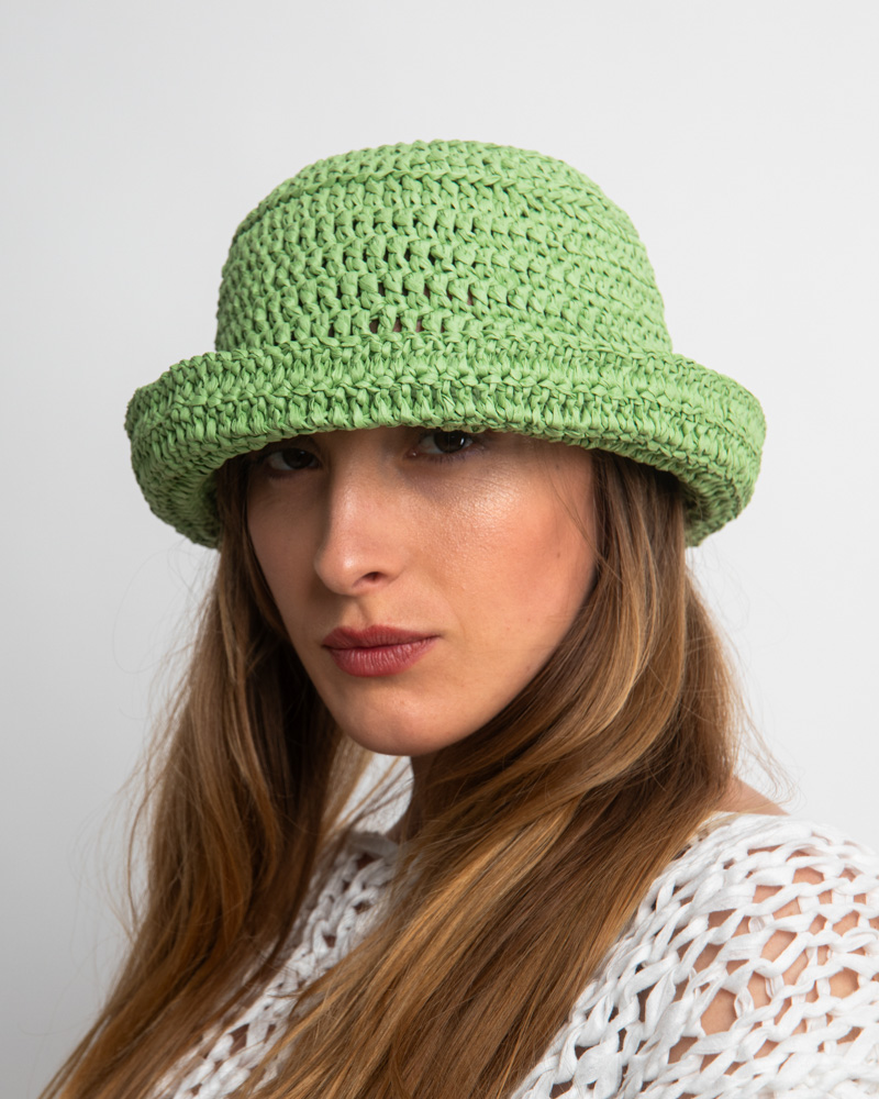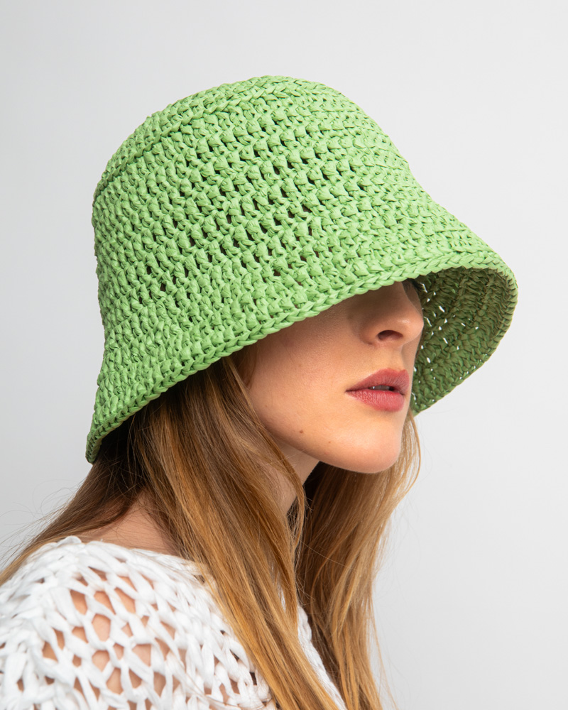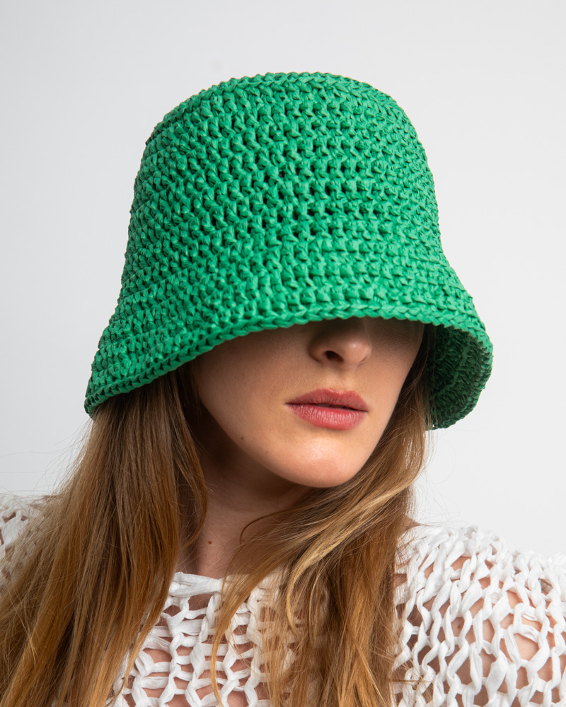 Raffia Bucket Hat, Green